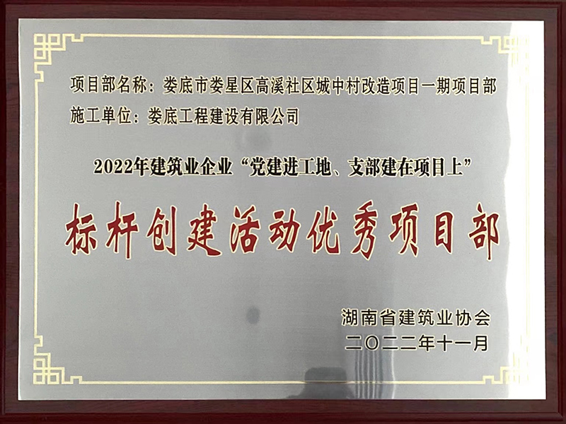2022年婁底市婁星區(qū)高溪社區(qū)城中村改造項(xiàng)目標(biāo)桿創(chuàng)建優(yōu)秀項(xiàng)目部獎(jiǎng)牌