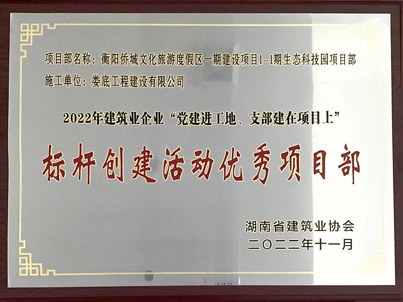 2022年衡陽僑城文化旅游度假區(qū)一期生態(tài)科技園項(xiàng)目標(biāo)桿創(chuàng)建活動(dòng)優(yōu)秀項(xiàng)目部獎(jiǎng)牌