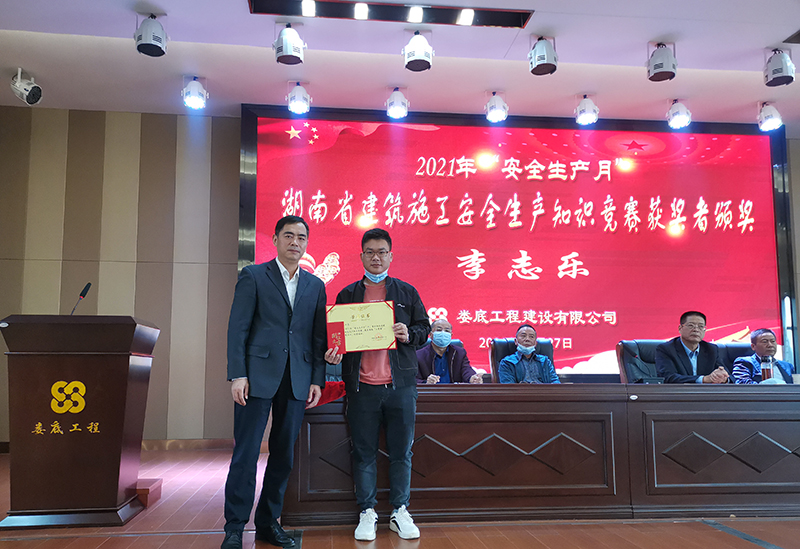 5總工程師李偉(左一)為湖南省建筑施工安全生產(chǎn)知識競賽獲獎者頒獎