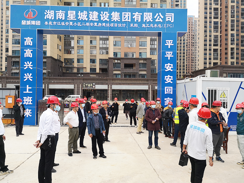 為進一步加強項目質(zhì)量管理,不斷提高我司建筑工程質(zhì)量的總體水平。當天下午2:30分,由副總經(jīng)理彭洪偉率領公司相關部室和項目部關鍵崗位人員至婁底市江溪安置小區(qū)二期安置房建設項目和鑫湘半山豪庭項目進行觀摩學習。
