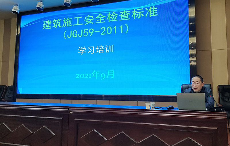 同時,為了提升員工的安全技術知識水平,提高項目管理人員的安全管理業(yè)務水平,促進技術和知識的更新。當晚6:30分,公司特邀請婁底市住建局質(zhì)安站安全部部長羅新湖來司授課,主講《建筑施工安全檢查標準JGJ59-2011圖解》。