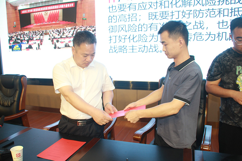 ▲各項目負責人簽署《項目部主要負責人安全承諾書》并呈交給總經(jīng)理