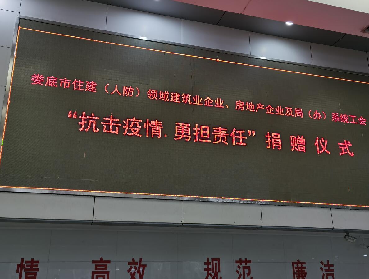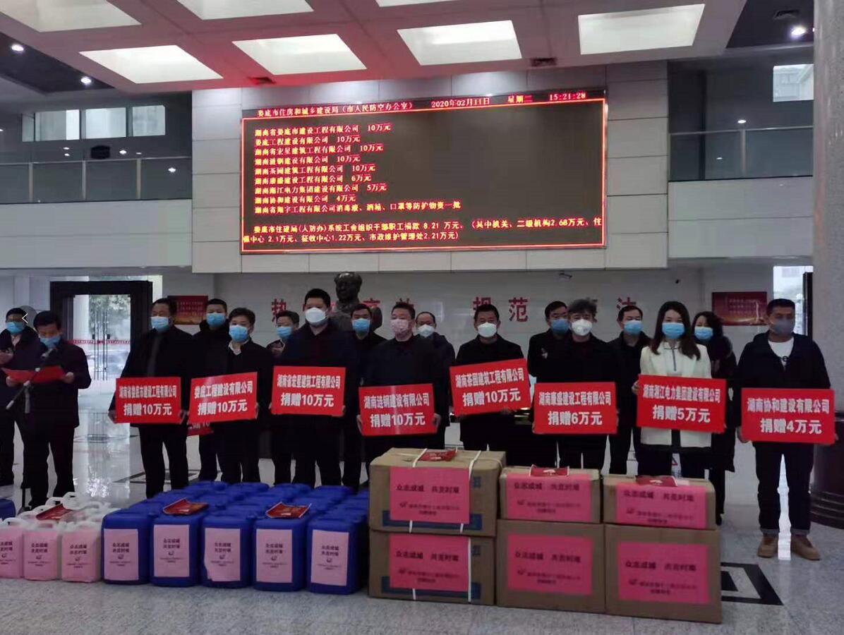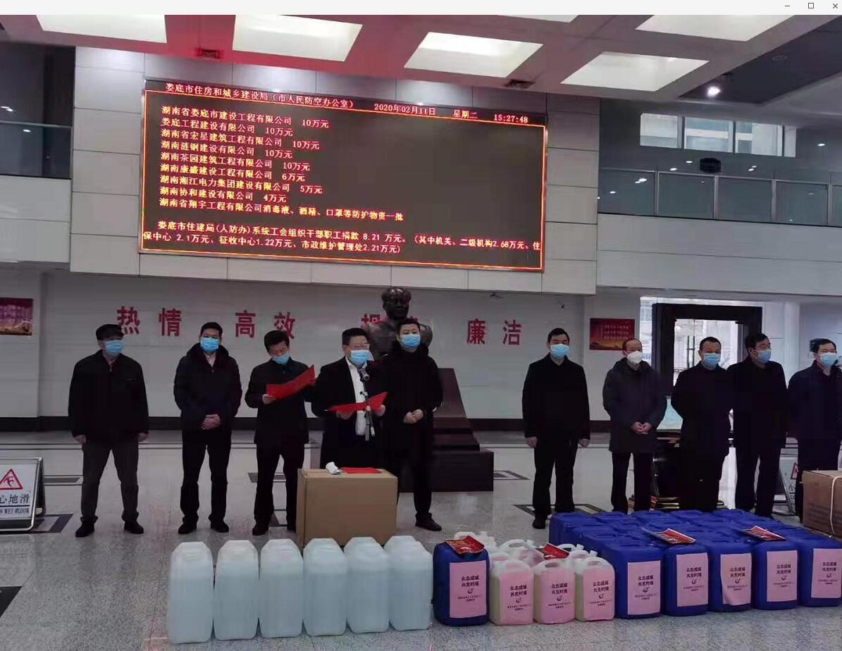 “病毒無(wú)情人有情”、“一方有難八方支援”!2020年2月11日,在婁底市住建局(人防辦)組織的市住建(人防)領(lǐng)域建筑業(yè)企業(yè)、房地產(chǎn)企業(yè)及局(辦)系統(tǒng)工會(huì)“抗擊疫情,勇?lián)?zé)任”捐贈(zèng)儀式上,公司總經(jīng)理、法人代表胡勁代表婁底工程建設(shè)有限公司捐贈(zèng)人民幣10萬(wàn)元,為抗擊新冠病毒肺炎疫情盡企業(yè)的一份社會(huì)責(zé)任。公司董事長(zhǎng)張愛(ài)慧參加了捐贈(zèng)儀式。