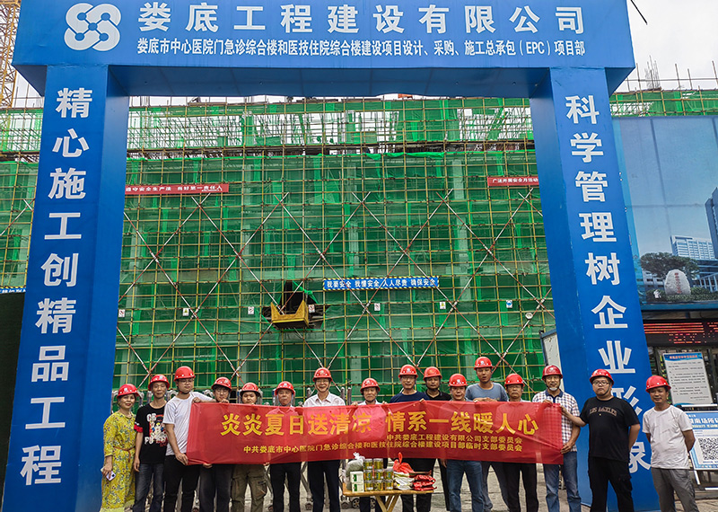 6月17日,公司黨支部和婁底市中心醫(yī)院項目部臨時黨支部在婁底市中心醫(yī)院門急診綜合樓和醫(yī)技住院綜合樓建設項目部開展開展“炎炎夏日送清涼 情系一線暖人心”主題黨日活動。黨支部書記林有良、副總經理彭洪偉以普通黨員的身份參加了此次活動。
