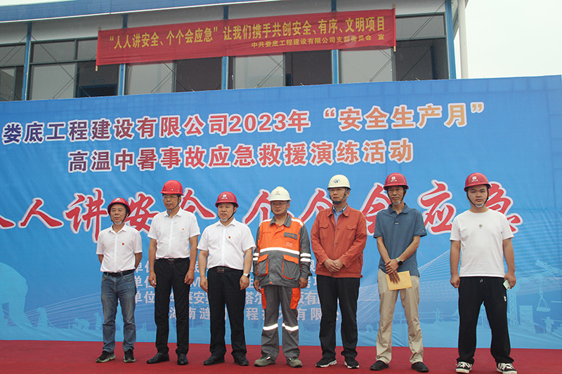 為響應(yīng)省、市2023年“安全生產(chǎn)月”活動有關(guān)文件要求,圍繞“人人講安全 個個會應(yīng)急”的主題進(jìn)一步提高公司安全管理水平,規(guī)范公司安全生產(chǎn)過程的管理工作,本著"安全第一、預(yù)防為主、綜合治理"的安全管理方針,在發(fā)生高溫中暑事故時,能夠迅速有效進(jìn)行搶救,通過高效率的組織體系應(yīng)對突發(fā)事件,以最短時間、 最有效的方法控制和減少人員財產(chǎn)損失,減少人身傷害事故。公司于2023年6月13日上午10時在VAMA保障性租賃住房項目部開展高溫中暑事故應(yīng)急救援演練活動。婁底市經(jīng)開區(qū)住房和城鄉(xiāng)建設(shè)局領(lǐng)導(dǎo)李愛民先生、康城先生,建設(shè)單位代表藍(lán)斌先先,監(jiān)理單位代表劉少勇先生,公司總經(jīng)理胡勁、黨支部書記何林、副總經(jīng)理彭洪偉出席了次此活動,公司各部室及婁底城區(qū)中心項目部近40余人參加了此次活動。